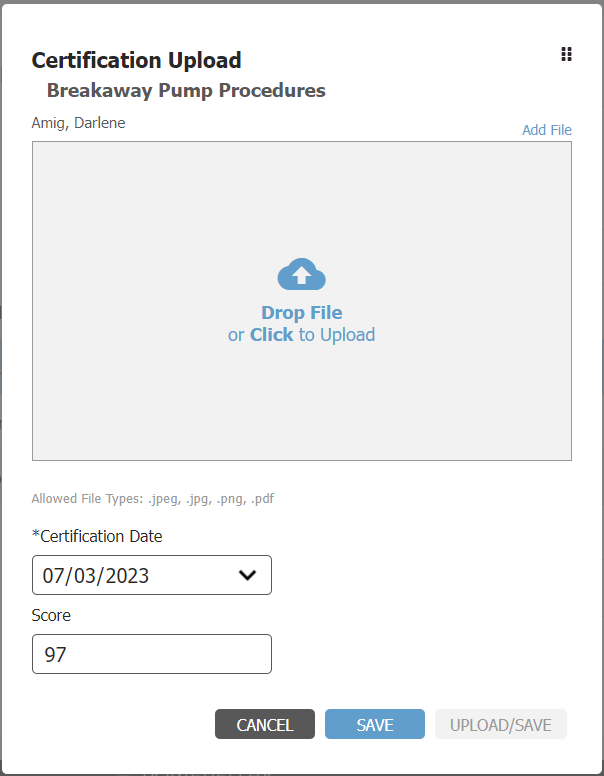 • Add certification dates related to training completed outside trainingGrid® and upload related certificates.
