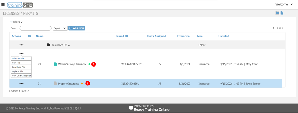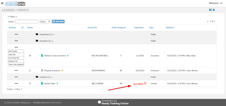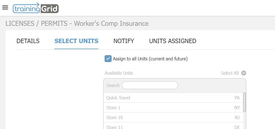 The 17.3 release of trainingGrid® introduces new functionality that allows you, as the training administrator, to upload and track licenses and permits specific to certain locations, as well as attach expiration dates and receive reminder notifications when certificates are about to expire. Licenses & Permits can be found under the Manage tab in the hamburger menu in trainingGrid®.